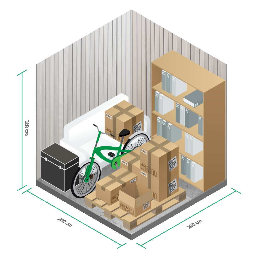 Onze Box C biedt met 2 m x 2 m x 2 m ca. 8 m³ net dat beetje extra opslagruimte. Ideaal voor meubels, meerdere verhuisdozen of seizoensspullen.