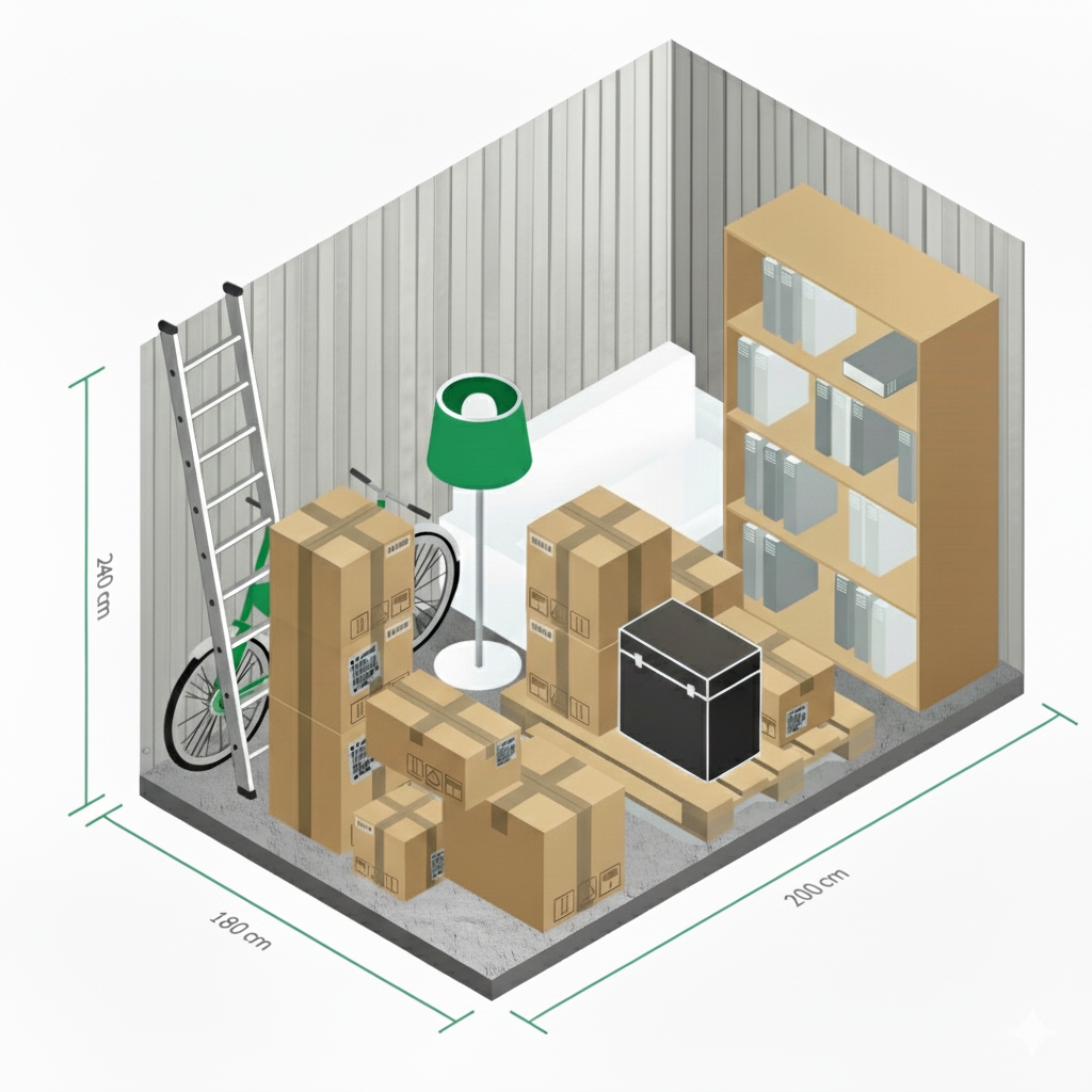Onze Box D is ideaal voor wie net wat meer ruimte nodig heeft. Met 2,0 m x 1,8 m x 2,4 m (ca. 9 m³) heb je volop plek voor meubels, verhuisdozen of voorraad.